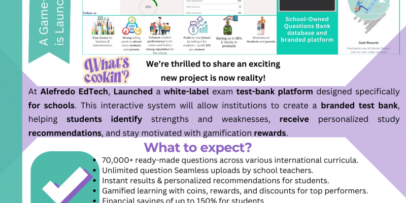 We’re thrilled to announce that our White-Label Exam Test Bank Platform is officially LIVE! 🎉 Schools can now offer their students a branded, interactive test bank packed with 70,000+ expertly crafted questions, personalized study recommendations, and a gamified learning experience.
