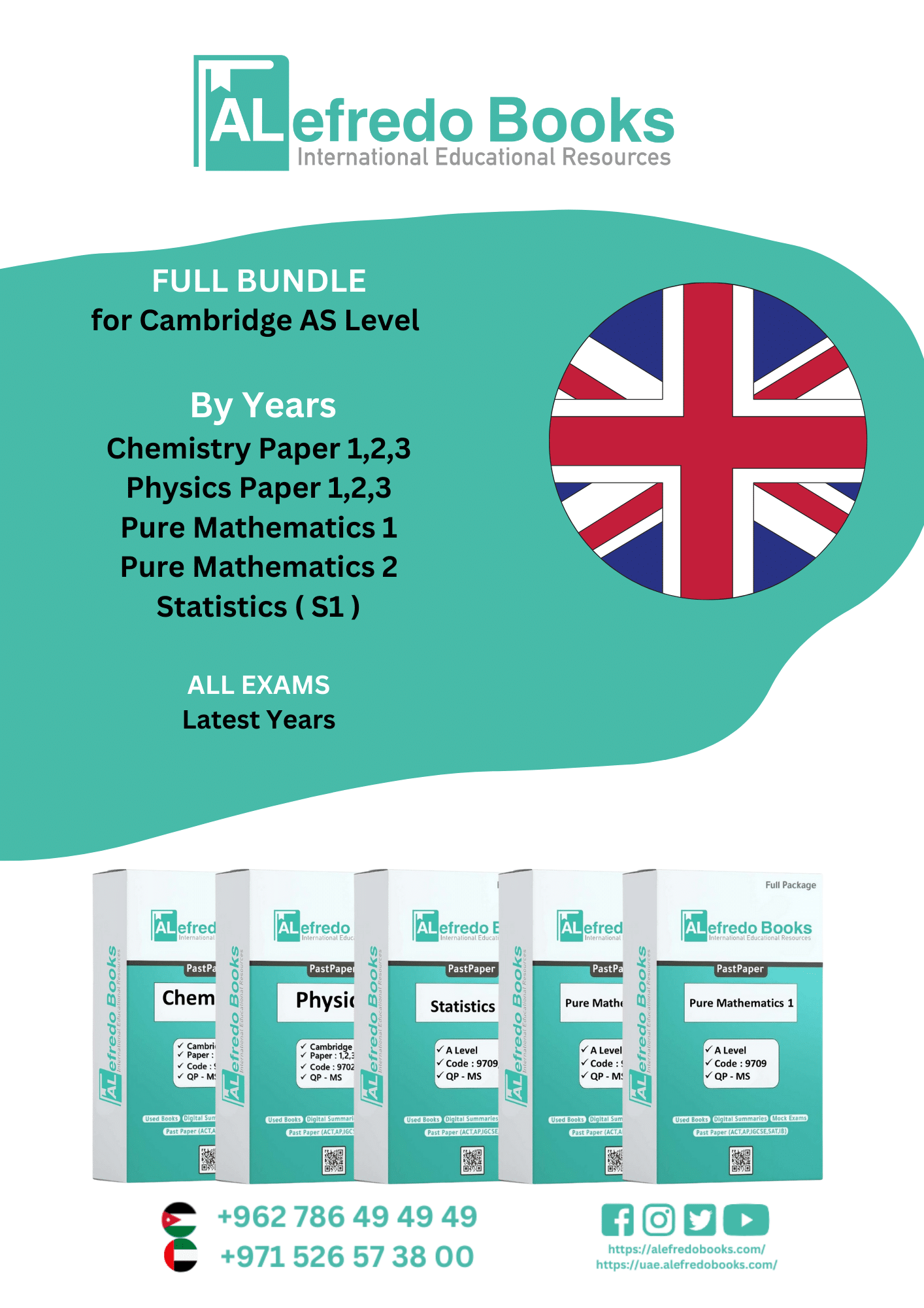 JOD10.00Cambridge AS Level Bundle ( Chemistry Paper 1,2,3 + Physics Paper 1,2,3 + Pure 1 + Pure 2 + Statistics 1 ) Past Papers ( Questions & Mark Scheme )