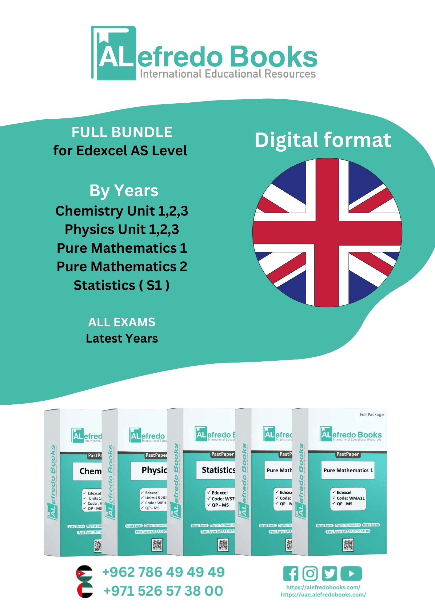 Conquer Edexcel AS Level exams in Jordan with this ultimate science-math digital bundle! It combines Physics Units 1-3 (Mechanics, Waves, Practicals), Chemistry Units 1-3 (Atomic Structure, Bonding, Lab Skills), Pure Mathematics 1 & 2, and Statistics 1—complete with past papers, mark schemes, and topic-sorted guides. Perfect for students juggling lab-heavy sciences and complex math, offering instant access to exam-ready practice at half the cost of printed materials.